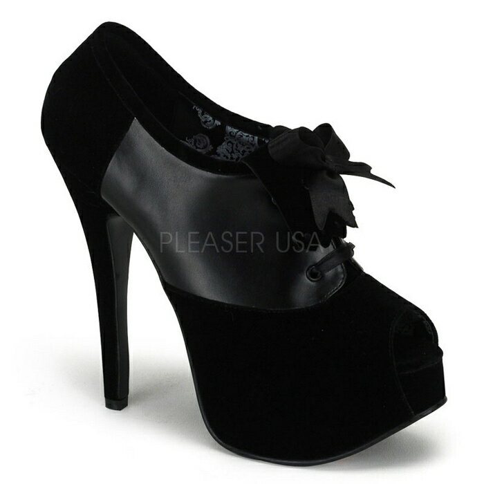 Pleaser プリーザー パンプス インヒール インソール 厚底 黒 ブラック ベルベット つや消し 女性 男性 用 ハイヒール 大きいサイズ 小さいサイズ ピンヒール ピープトゥ シークレットシューズ レディース メンズ 14 cm ヒール 15センチ ヒール TEEZE-16 TEE16/B/VEL 取寄